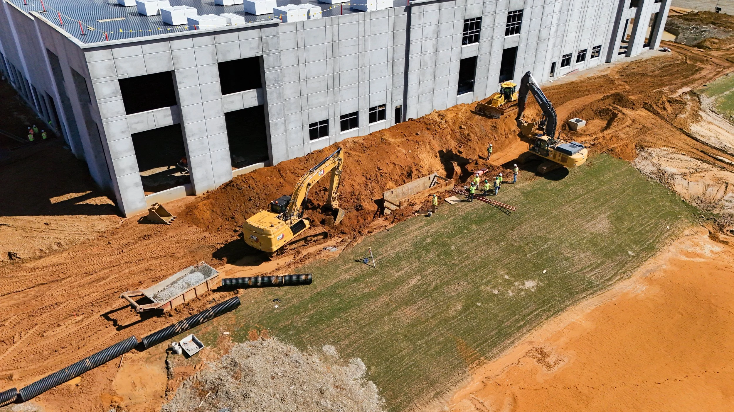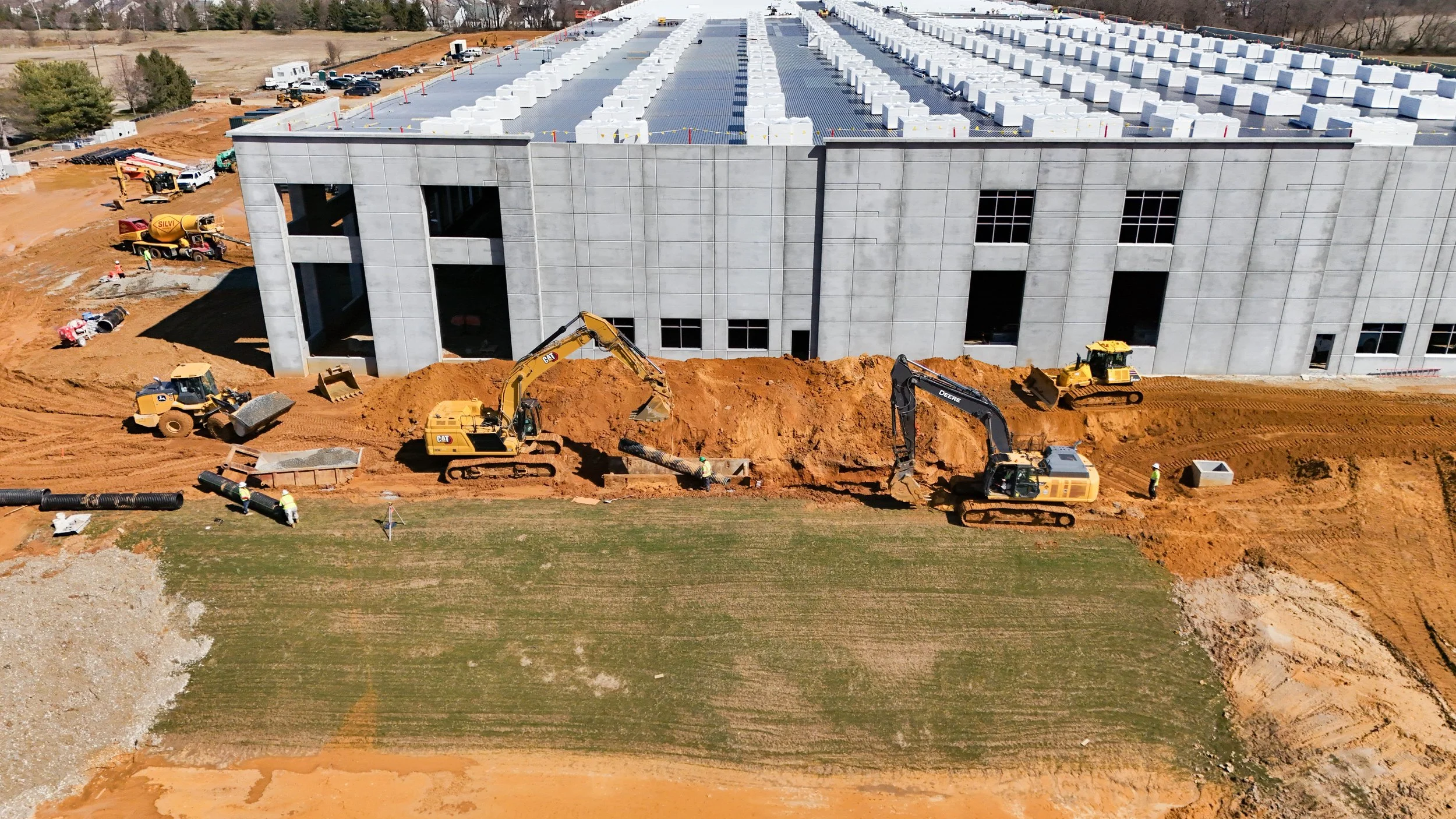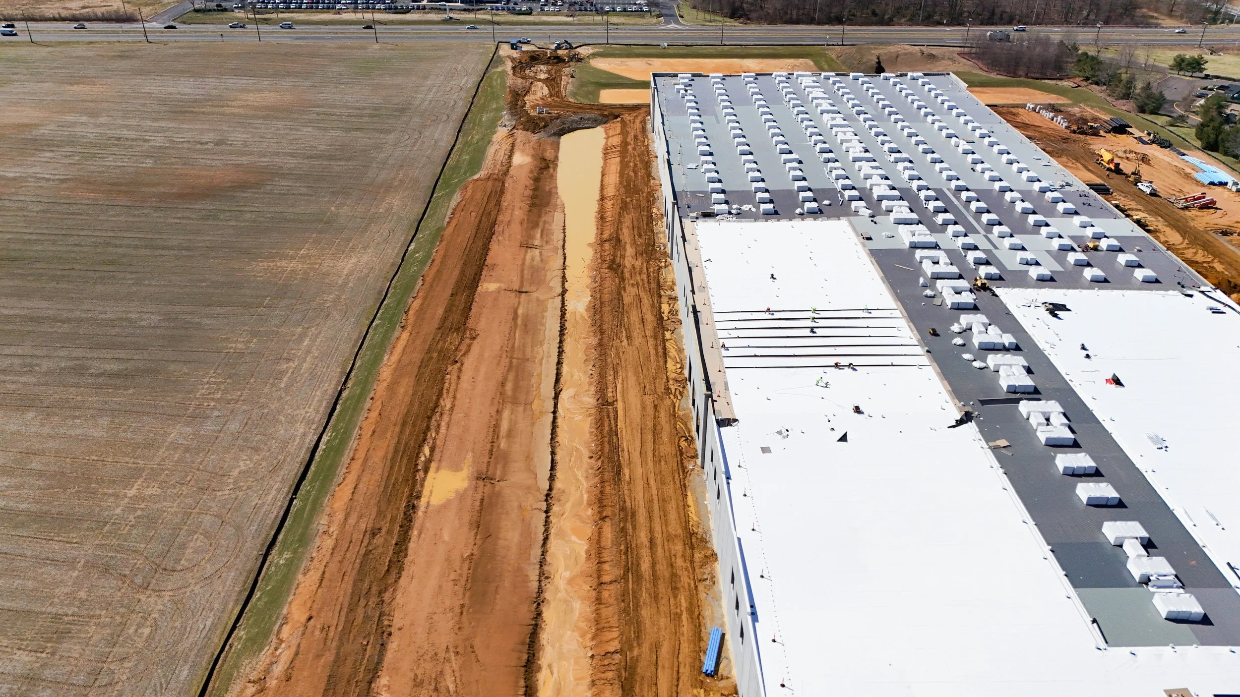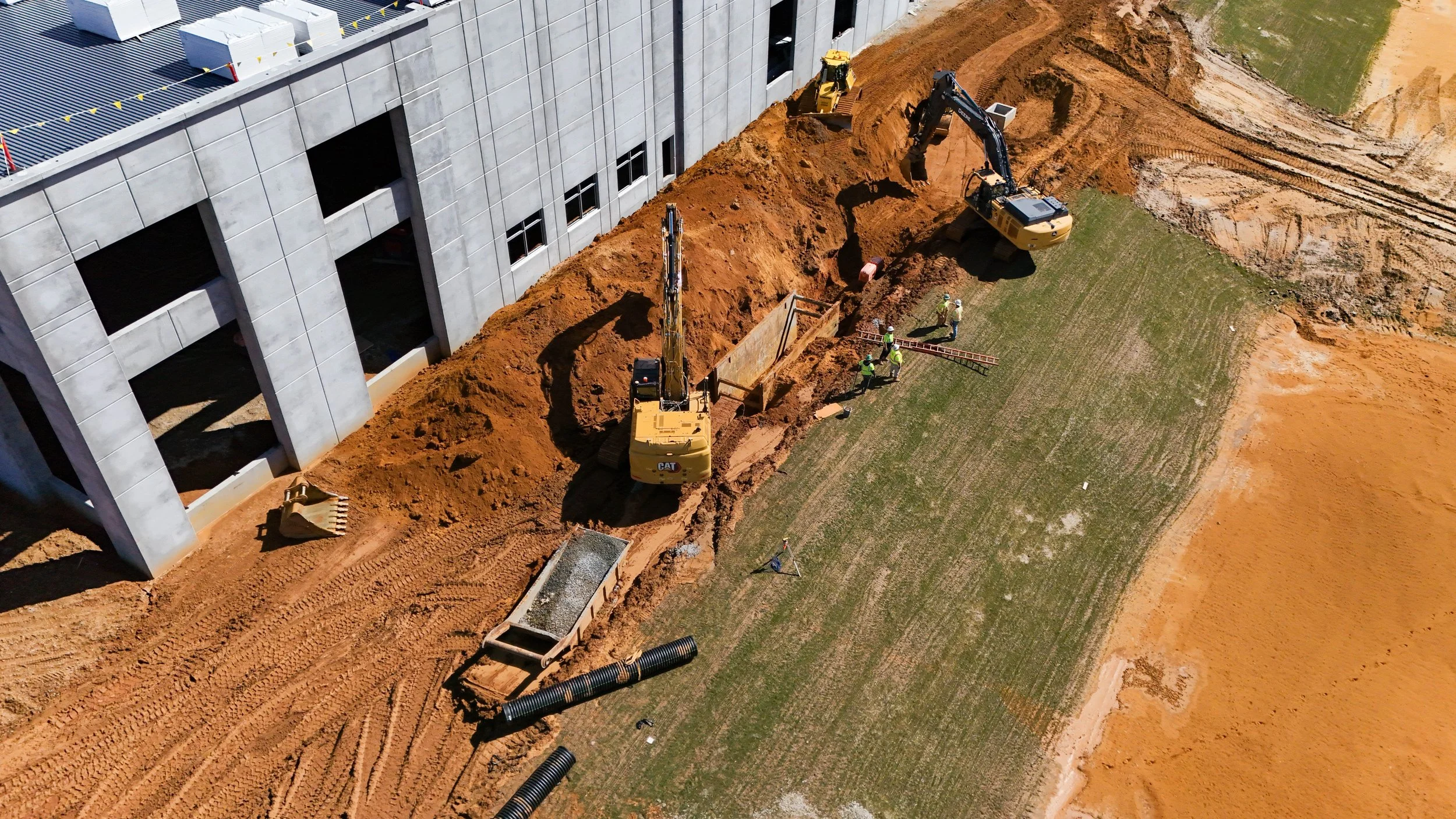 The site features over 58,000 cubic yards of balanced cut-to-fill earthwork, eliminating the need for import material. The scope also includes installation of 7,395 linear feet of storm drainage, 260 linear feet of sanitary sewer, 8,135 linear feet of concrete curb, and 11,994 square feet of sidewalk. Additional paving work includes 2,668 tons of 9.5M64 surface course, 5,337 tons of 19M64 stabilized base, and 830 tons of 9.5 open graded friction course. Diamond will also pour 490 cubic yards of concrete throughout the site.